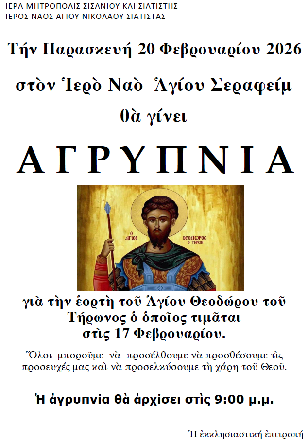 Δεν επιτρέπεται σχολιασμός στο Πρόγραμμα Θείων Λειτουργιών Φεβρουαρίου 2026.
