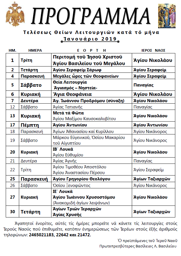 ΠΡΟΓΡΑΜΜΑ ΙΑΝΟΥΑΡΙΟΥ