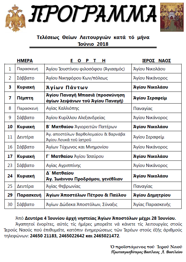 ΠΡΟΓΡΑΜΜΑ ΙΟΥΝΙΟΥ