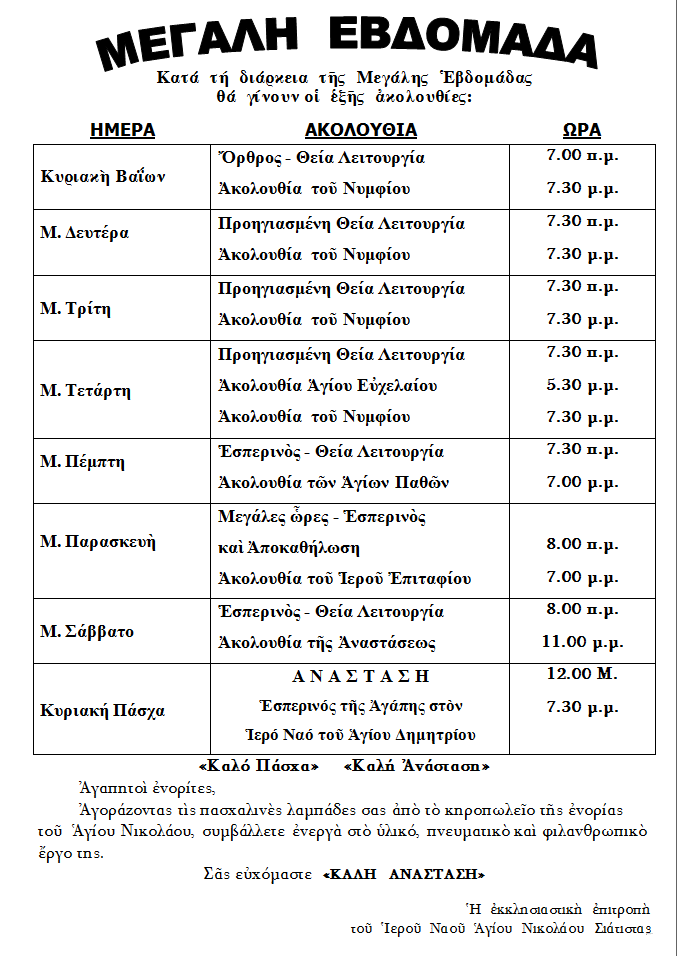 ΠΡΟΓΡΑΜΜΑ ΜΕΓΑΛΗΣ ΕΒΔΟΜΑΔΟΣ.