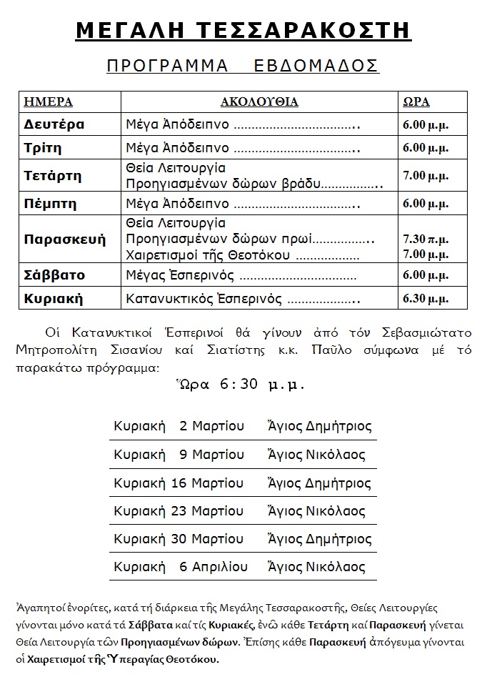 ΠΡΟΓΡΑΜΜΑ ΜΕΓΑΛΗΣ ΤΕΣΣΑΡΑΚΟΣΤΗΣ