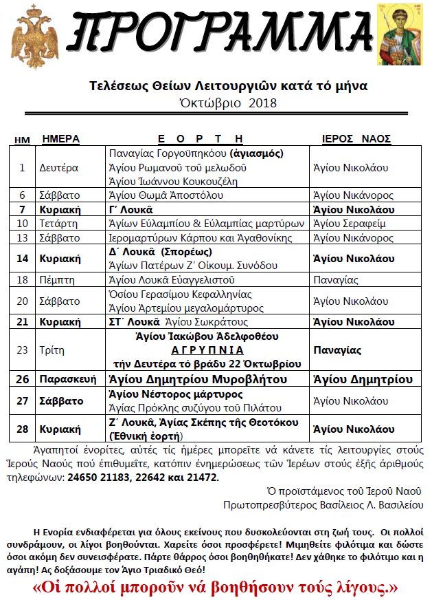 ΠΡΟΓΡΑΜΜΑ ΟΚΤΩΒΡΙΟΥ