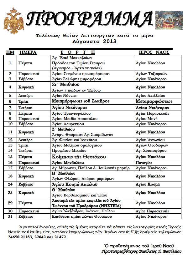 Ἕνα κάθε μήνα