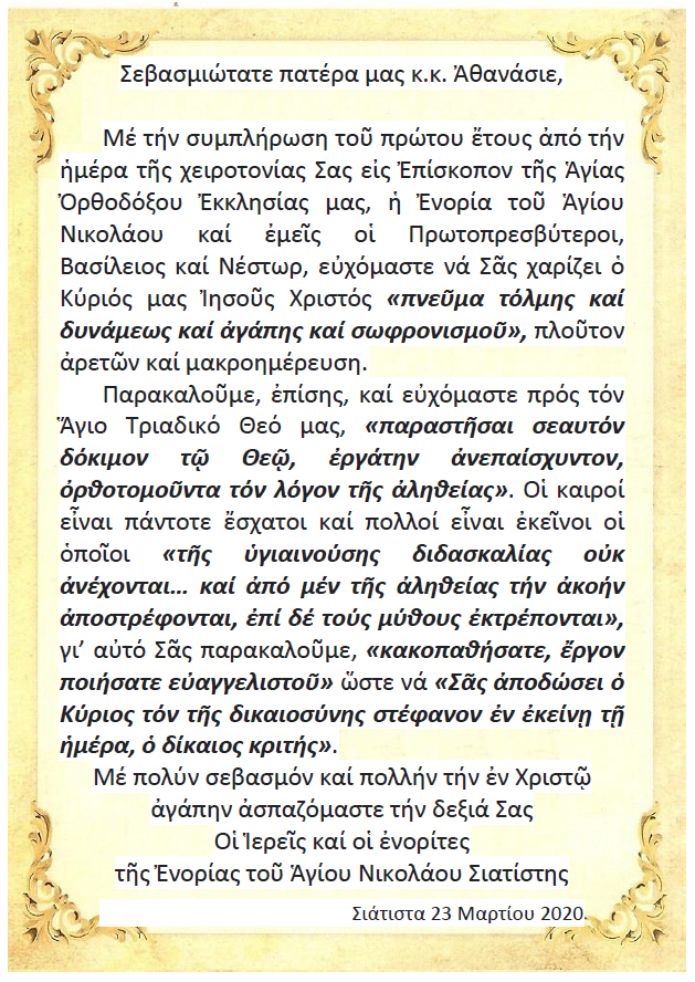 Μητροπολίτης κ.κ. Αθανάσιος