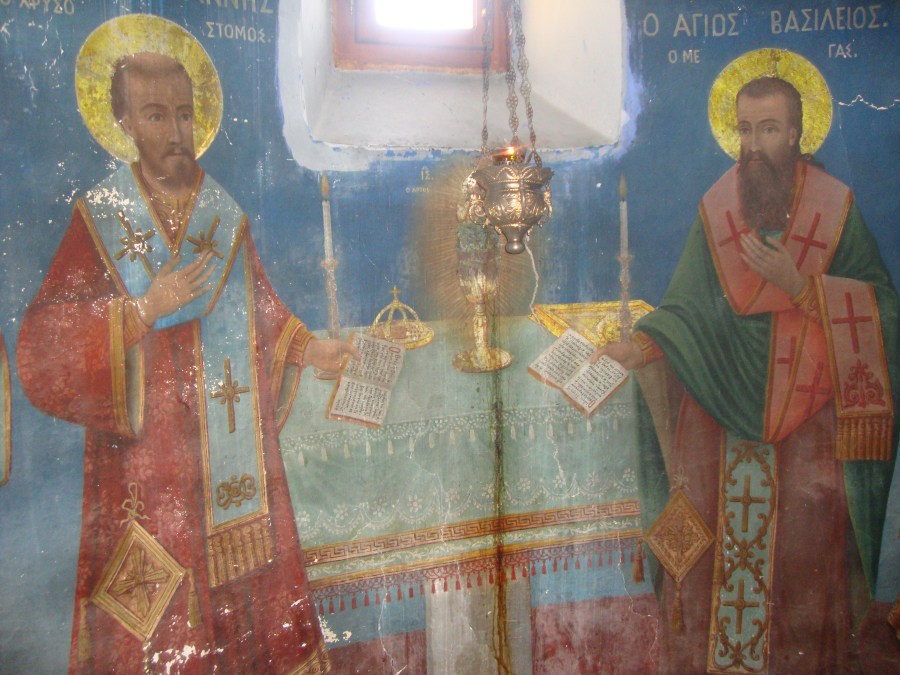 11. ΟΙ ΑΓΙΟΙ ΒΑΣΙΛΕΙΟΣ ΚΑΙ ΧΡΥΣΟΣΤΟΜΟΣ ΣΕ ΤΟΙΧΟΓΡΑΦΙΑ ΤΟΥ ΝΑΟΥ