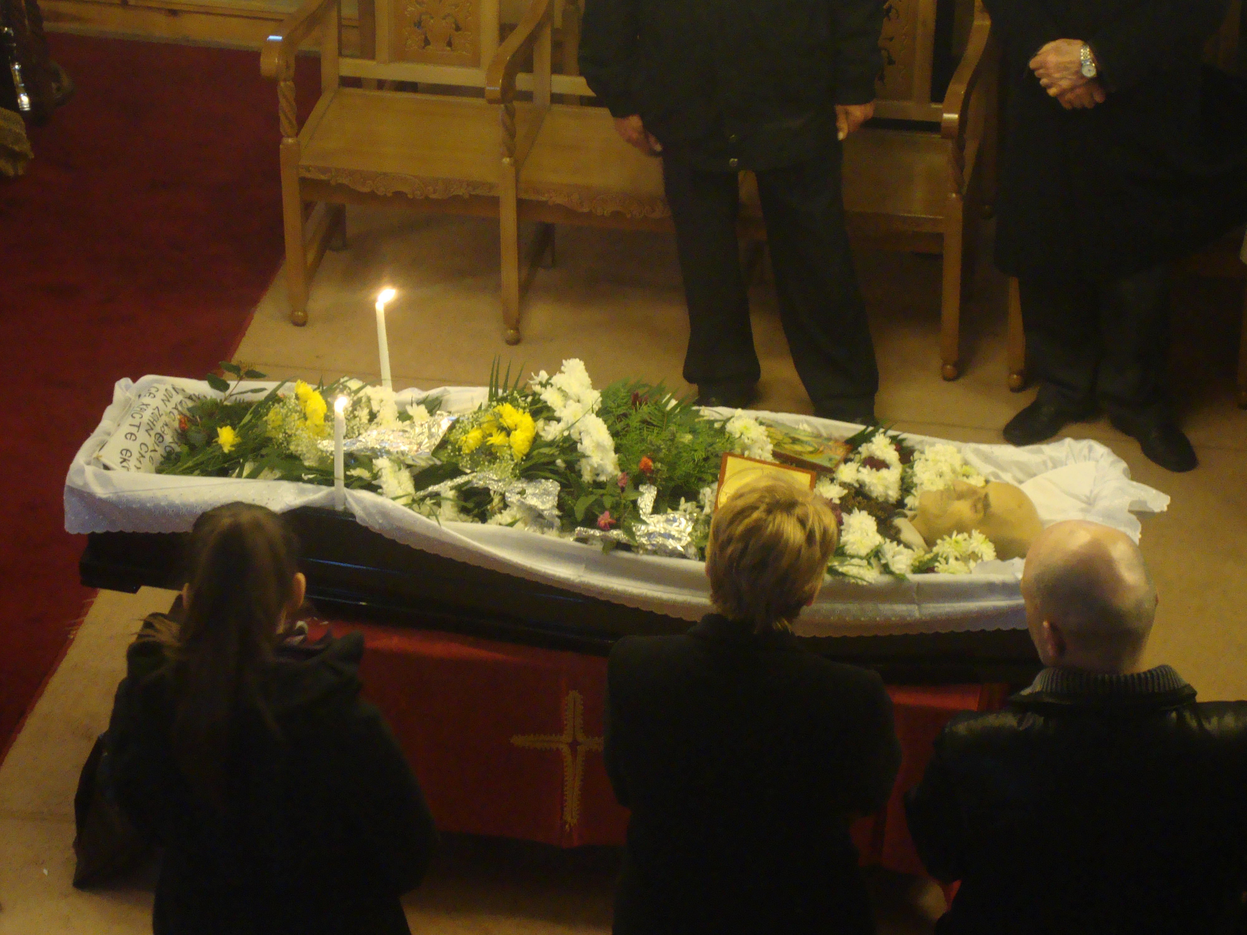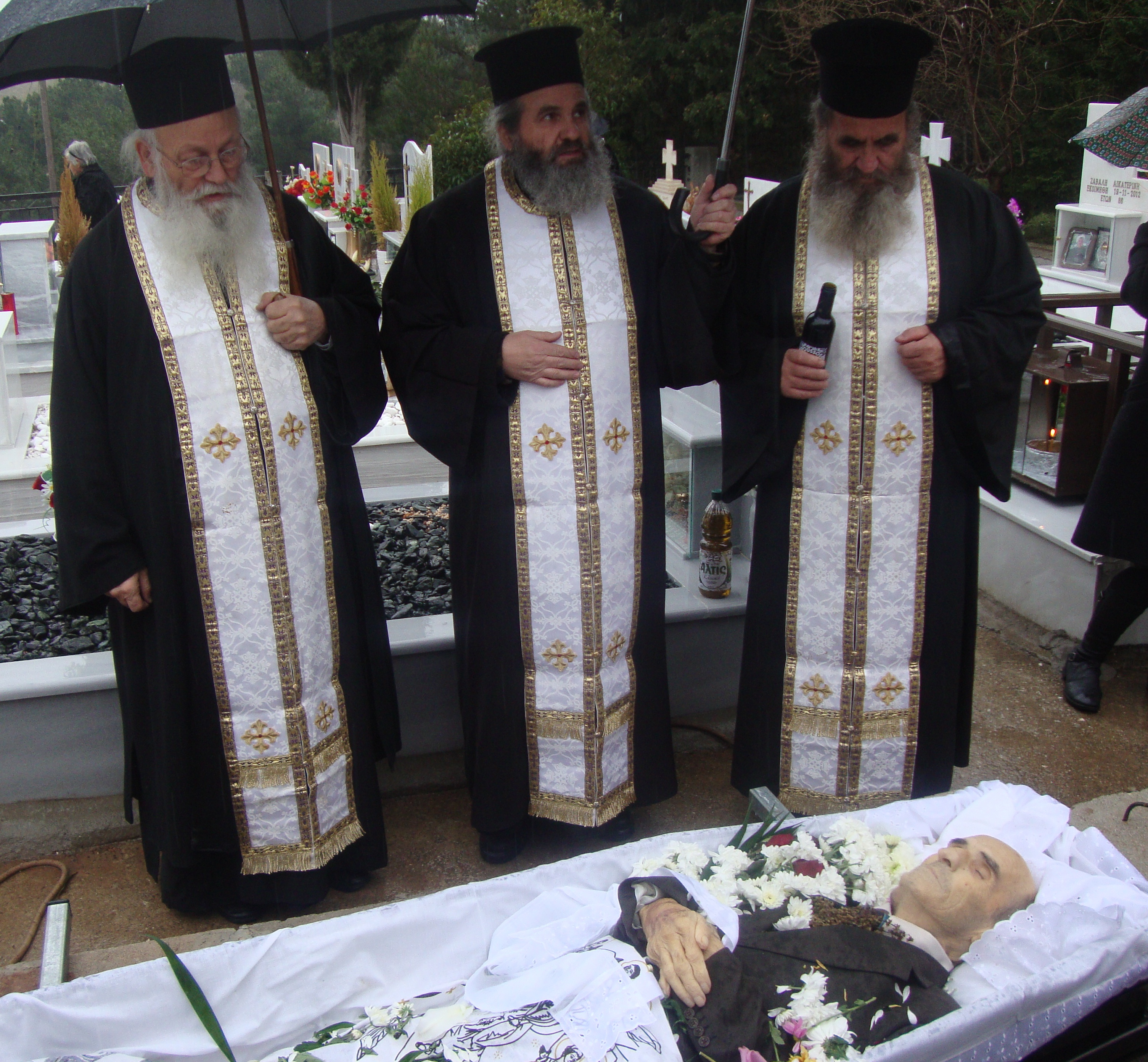 Την εξόδιο ακολουθία τέλεσαν οι Ιερείς π. Βασίλειος, π. Νέστορας και π. Σπυρίδων.