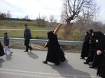 Εκεί, αφού την τοποθέτησαν στο κέντρο του Ναού, ξεκίνησε ο εσπερινός του Ευαγγελισμού της Θεοτόκου, συμπροσευχομένων των Ιερέων π. Βασιλείου, π. Νέστορος, π. Στεργίου, π. Γρηγορίου και π. Ιωάννου, ο οποίος και συνόδευσε την εικόνα από το μοναστήρι μέχρι την πόλη της Σιάτιστας.