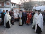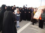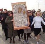 Ο Πρωτοσύγκελος με τους Ιερείς, αφού ασπάσθηκαν την Εικόνα της Παναγίας, εν πομπή την μετέφεραν μέχρι τον Ιερό Ναό του Αγίου Νικολάου.