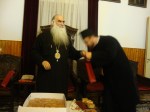 Κατά τη διάρκεια της εκδηλώσεως και μετά την κοπή και το μοίρασμα της πίττας, ο Σεβασμιώτατος Μητροπολίτης θέλοντας να μοιραστεί τη χαρά του από ένα νέο βιβλίο που αναφέρεται στον Άγιο Πορφύριο, το οποίο διάβασε πρόσφατα, ανέγνωσε ένα χαρακτηριστικό απόσπασμα, για το πώς ζούσε ο άγιος Πορφύριος.
