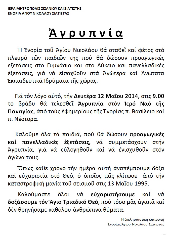 Αυτό το άρθρο δημοσιεύτηκε στην Επικαιρότητα και έχει ετικέτα Αγρυπνίες. Αποθηκεύστε το μόνιμο σύνδεσμο.