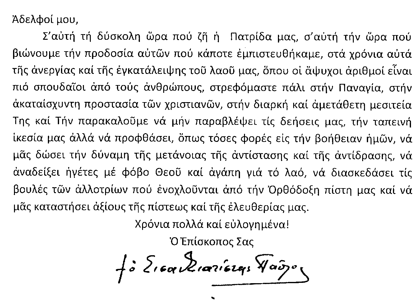 Ακολουθεί η Εγκύκλιος του Σεβασμιωτάτου Μητροπολίτου Σισανίου και Σιατίστης κ. κ. Παύλου: