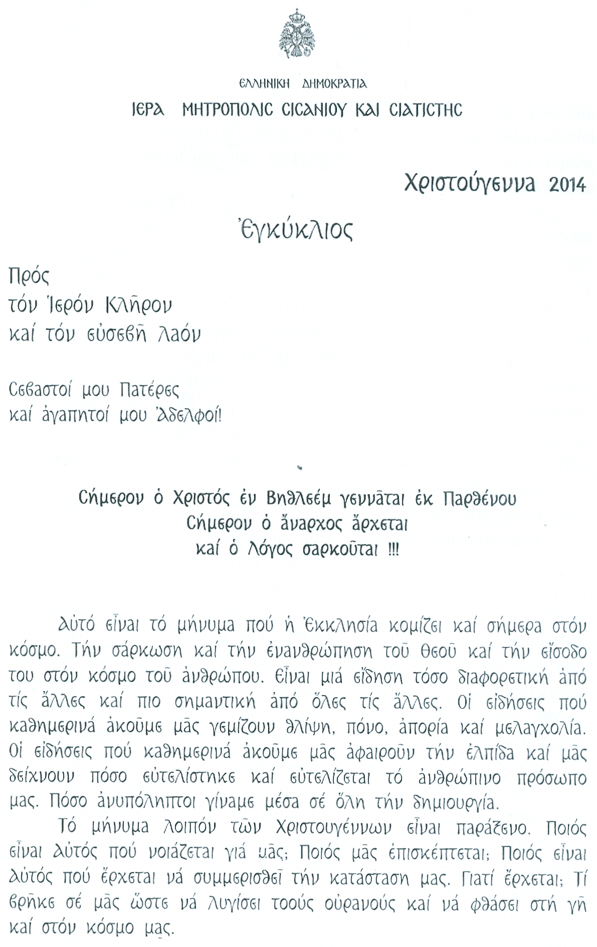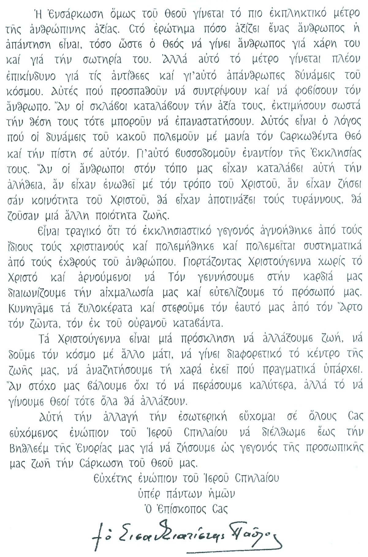 Εγκύκλιο Μήνυμα του Σεβασμιωτάτου Μητροπολίτου Σισανίου και Σιατίστης κ.κ. Παύλου για την εορτή των Χριστουγέννων