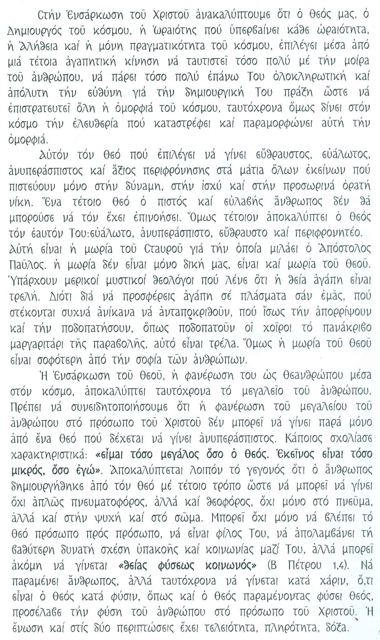 «Ὅταν ὑπάρχει ἡ φλόγα τῆς ἀγάπης, ὅτι κακὸ πλησιάζει τὸ κατακαίει...»