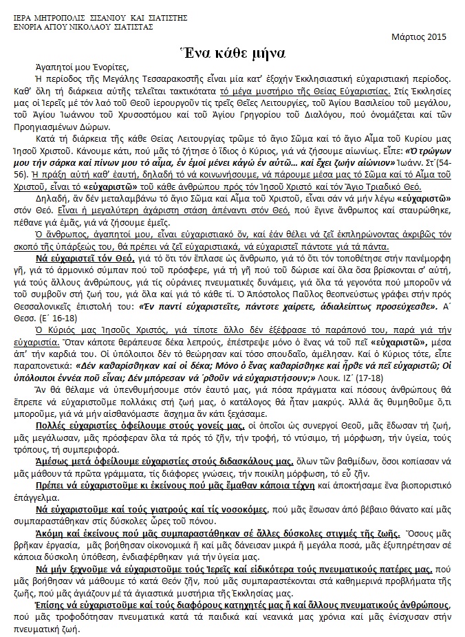 Άρθρο δημοσιεύτηκε στις 3 Μαρτίου 2015 από Ενορία