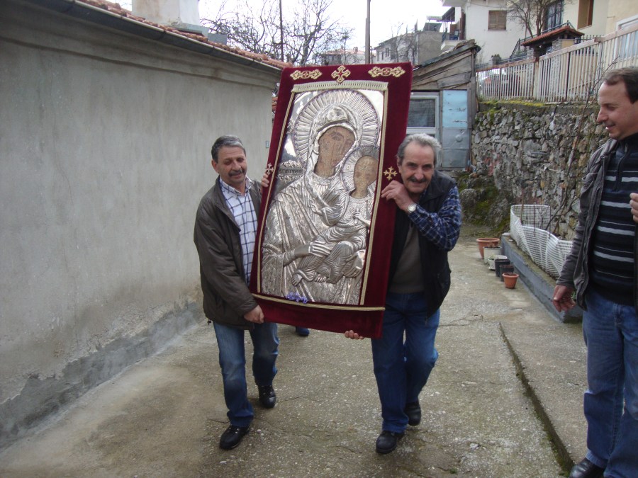 ← Η εικόνα της Παναγίας Ελεούσας Μικροκάστρου περιφέρεται για ευλογία στα σπίτια της Ενορίας του Αγίου Νικολάου