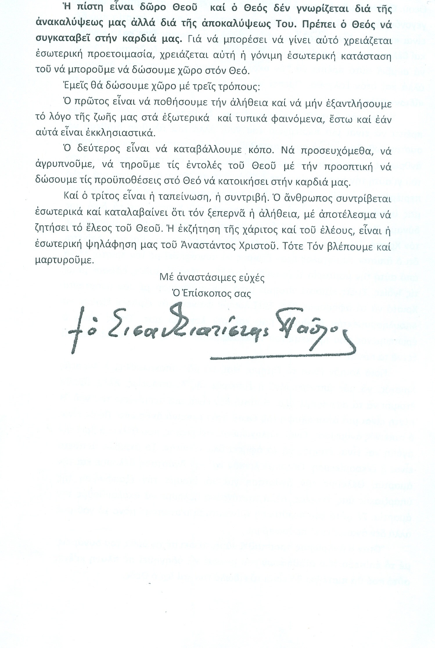 Εγκύκλιος επί τη Κυριακή του Θωμά του Σεβασμιωτάτου Μητροπολίτου Σισανίου και Σιατίστης κ. κ. Παύλου