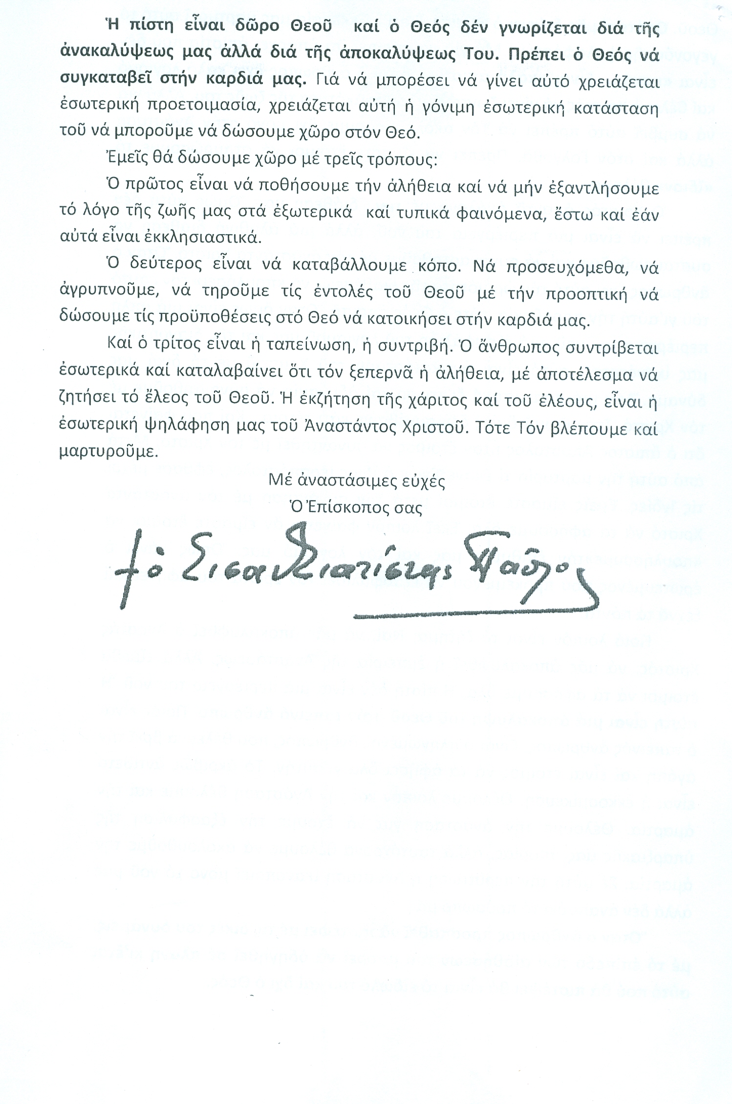 ← Εγκύκλιος επί τη Κυριακή του Θωμά του Σεβασμιωτάτου Μητροπολίτου Σισανίου και Σιατίστης κ. κ. Παύλου
