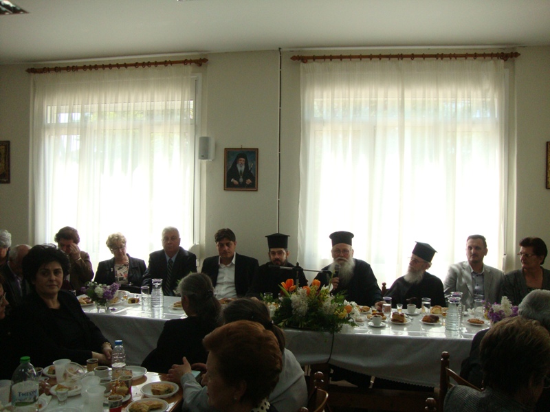 Ακολούθησε κέρασμα προς όλους στο Πνευματικό Κέντρο του Ιερού Ναού Αγίων Κωνσταντίνου και Ελένης, και αβραμιαία φιλοξενία στην οικογένεια του αοιδίμου π. Λάμπρου, καθώς και όσων είχαν έλθει από μακρινές πόλεις.