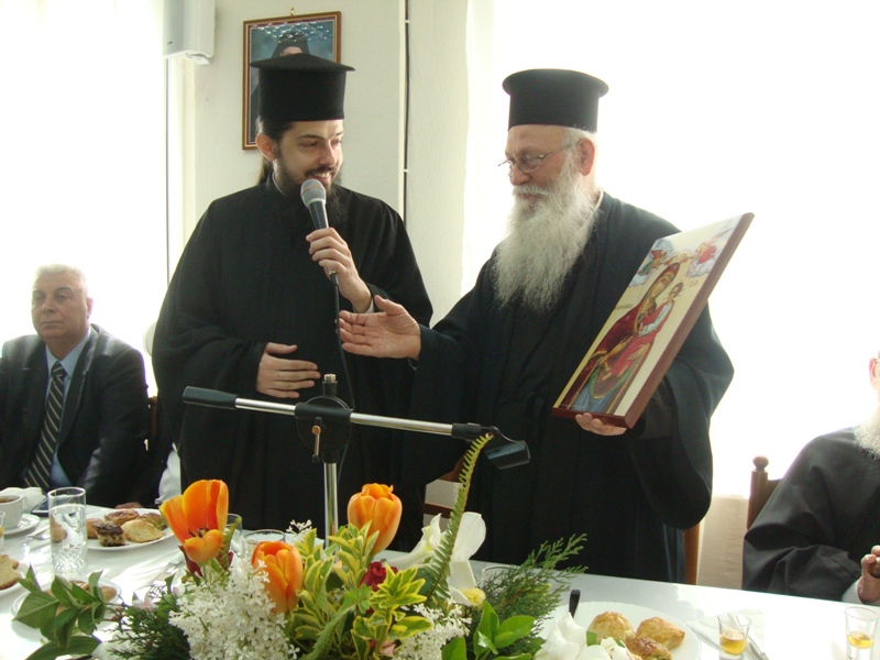 Ο προϊστάμενος του Ναού Αρχιμανδρίτης π. Αντώνιος πρόσφερε στον π. Βασίλειο την ευλογημένη εικόνα της Παναγίας Γοργοϋπηκόου εις ανάμνηση της ημέρας αυτής.