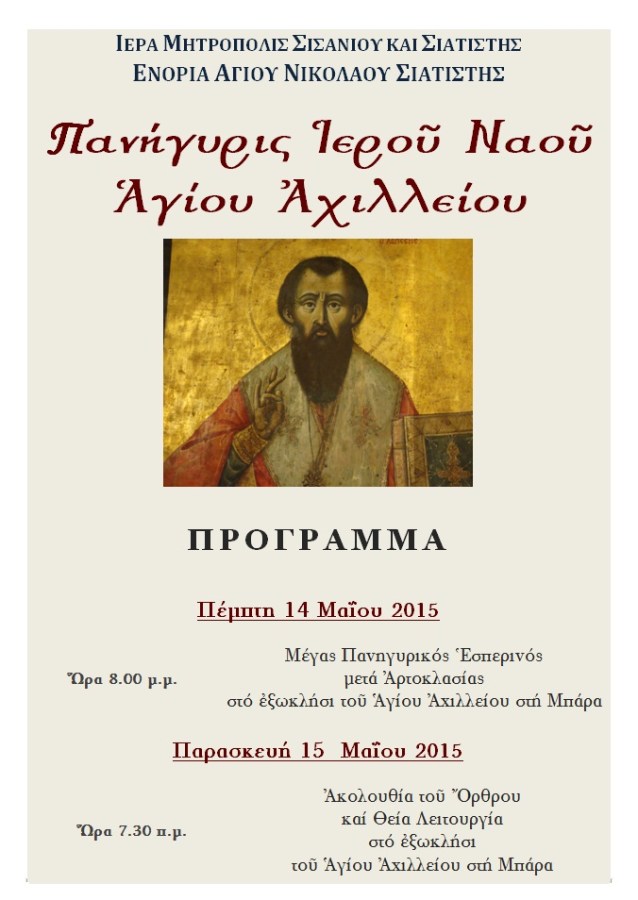 Πανήγυρις Ιερού Ναού Αγίου Αχιλλείου