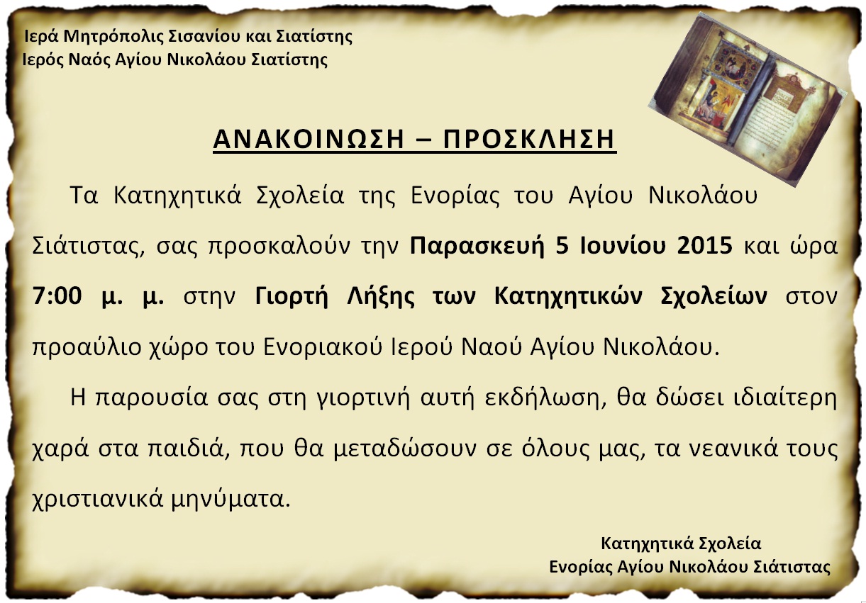 Εορτή λήξης των Κατηχητικών Σχολείων της Ενορίας του Αγίου Νικολάου Σιάτιστας