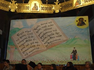 Τελειώνοντας, όλοι μαζί, παιδιά και όλο το κοινό, έψαλαν το απολυτίκιο του Αγίου Νικολάου, «Κανόνα πίστεως…».