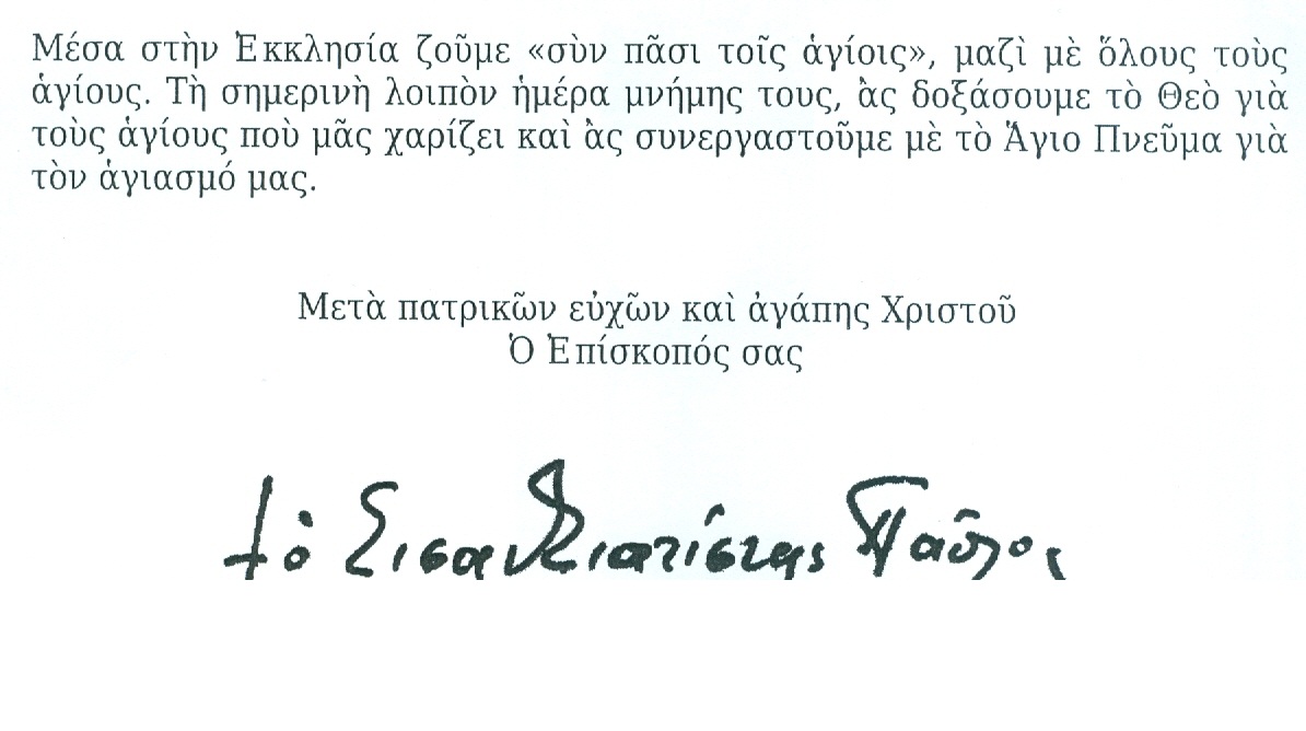 Σεβασμιωτάτου Μητροπολίτου Σισανίου και Σιατίστης κ.κ. Παύλου «Εγκύκλιος επί τη Κυριακή των Αγίων Πάντων»