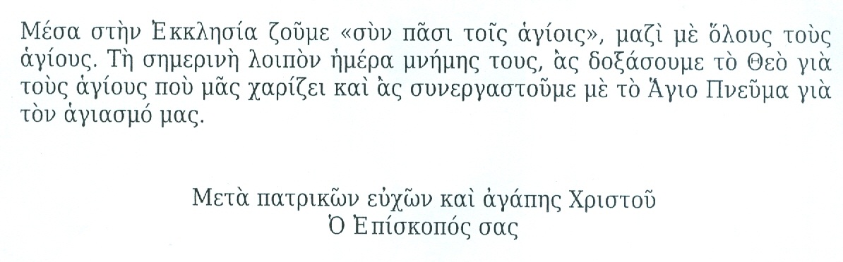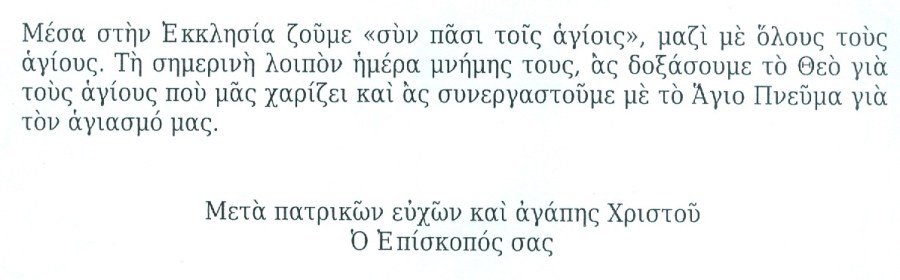 ← Σεβασμιωτάτου Μητροπολίτου Σισανίου και Σιατίστης κ.κ. Παύλου «Εγκύκλιος επί τη Κυριακή των Αγίων Πάντων»