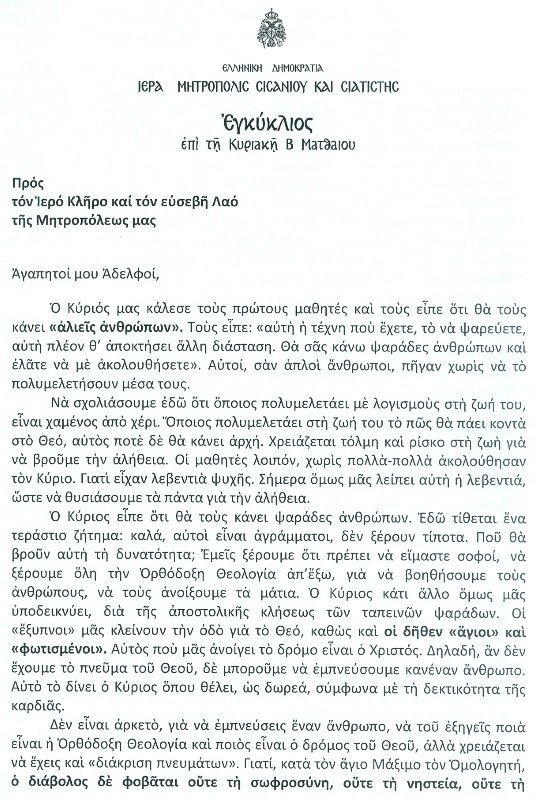 ← Σεβασμιωτάτου Μητροπολίτου Σισανίου και Σιατίστης κ. κ. Παύλου «Εγκύκλιος επί τη Κυριακή Β΄ Ματθαίου»
