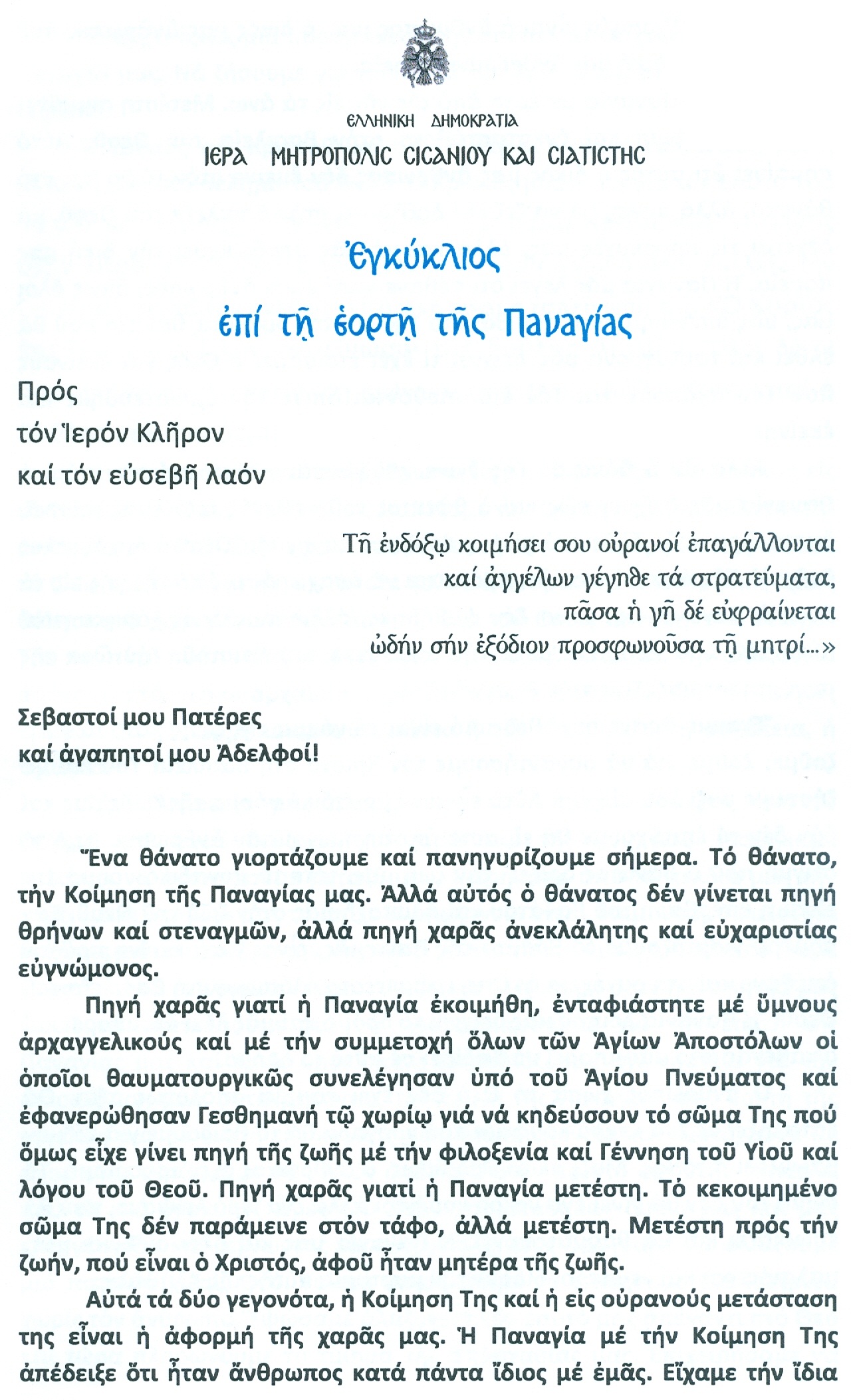 Ο εορτασμός της Κοιμήσεως Θεοτόκου στην Ενορία του Αγίου Νικολάου Σιάτιστας