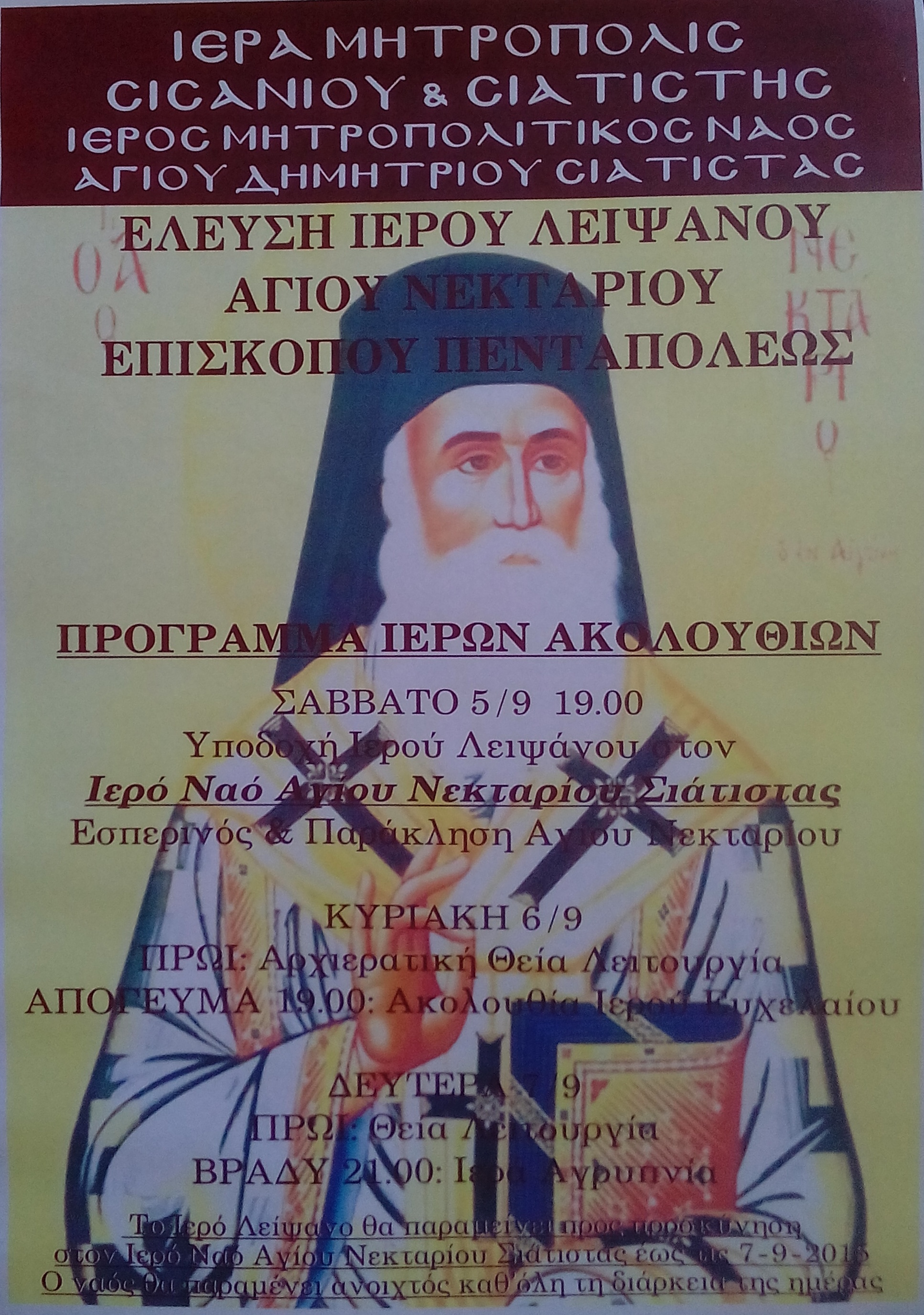Έλευση Ιερού Λειψάνου Αγίου Νεκταρίου στην πόλη της Σιάτιστας