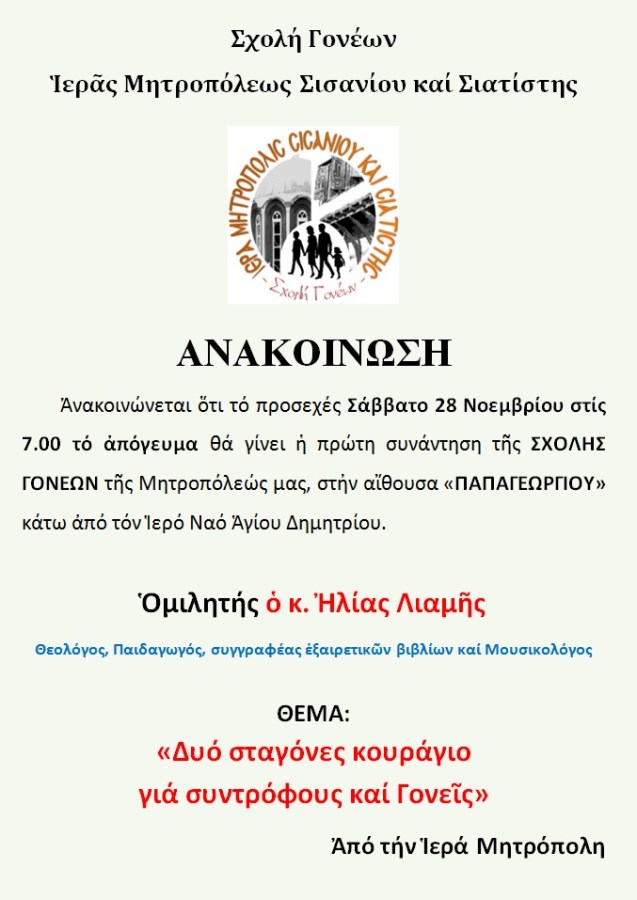 Σχολή Γονέων Ιεράς Μητροπόλεως Σισανίου και Σιατίστης