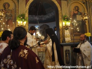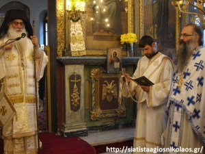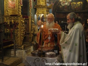 Την αγιώνυμο ημέρα της εορτής, με ιεροπρέπεια και στιγμές λατρευτικής κατάνυξης και συγκίνησης, τελέσθηκε η πανηγυρική Αρχιερατική Θεία Λειτουργία στον Ενοριακό Ιερό Ναό του Αγίου Νικολάου, από τον Σεβασμιώτατο Μητροπολίτη Σισανίου και Σιατίστης κ. κ. Παύλο, συλλειτουργούντων των Αρχιμανδριτών π. Εφραίμ, π. Ευσεβίου και των Ιερέων π. Βασιλείου, π. Ιωάννη π. Νικολάου και π. Αθανασίου.