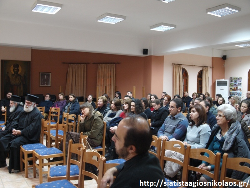 Προσκεκλημένος ήταν ο κ. Ηλίας Λιαμής, Θεολόγος, Παιδαγωγός συγγραφέας εξαιρετικών βιβλίων και μουσικολόγος, για να αναπτύξει το θέμα: «Δύο στάλες κουράγιο για συντρόφους και γονείς». Όμως για λόγους υγείας δεν κατάφερε να έρθει στην πόλη της Σιάτιστας και έτσι στους γονείς μίλησε ο Σεβασμιώτατος Μητροπολίτης Σιατίστης κ. Παύλος με θέμα: «Παιδιά και γονείς γιορτάζουν Χριστούγεννα». Ένα θέμα που θα συζητιόταν το Δεκέμβριο στη δεύτερη συνάντηση της Σχολής Γονέων.