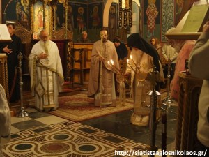 Πανηγυρικά τελέσθηκε στην πόλη της Σιάτιστας η πρώτη ιερά αγρυπνία μετά την αγιοκατάταξη του νέου Αγίου της Εκκλησίας μας, Οσίου Πορφυρίου του Καυσοκαλυβίτου, την Τρίτη 1 Δεκεμβρίου 2015 το βράδυ, στον Μητροπολιτικό Ιερό Ναό του Αγίου Δημητρίου. Στην πολύωρη και όντως κατανυκτική ιερά αγρυπνία χοροστάτησε και τέλεσε τη Θεία Λειτουργία ο Σεβασμιώτατος Μητροπολίτης Σισανίου και Σιατίστης κ. κ. Παύλος συμπαραστατούμενος από τον Αρχιμανδρίτη π. Στέφανο και τους Ιερείς π. Στέργιο, π. Βασίλειο π. Νέστορα και π. Γρηγόριο.
