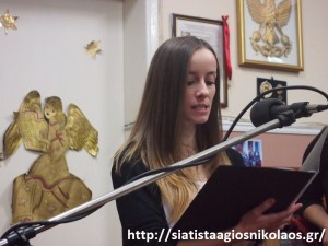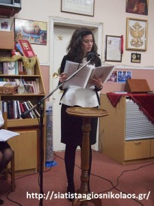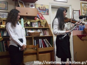 Την Κυριακή 13 Δεκεμβρίου 2015 στην αίθουσα του Πνευματικού Κέντρου του Αγίου Νικολάου, πραγματοποιήθηκε μια μουσικο-λογοτεχνική εκδήλωση με τίτλο «Τραγούδι και Βιβλίο».