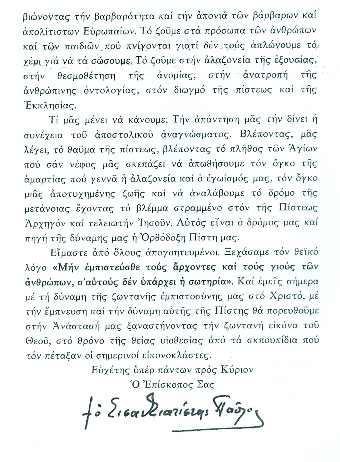 Εγκύκλιος Κυριακής Ορθοδοξίας Σεβασμιωτάτου Μητροπολίτου Σισανίου και Σιατίστης κ.κ. Παύλου