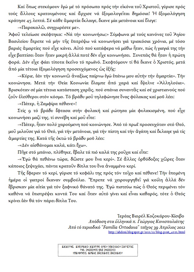 «Ὅταν ὑπάρχει ἡ φλόγα τῆς ἀγάπης, ὅτι κακὸ πλησιάζει τὸ κατακαίει...»