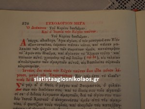 «Τῇ Ἁγία καὶ Mεγάλη Πέμπτη, οἱ τὰ πάντα καλῶς διαταξάμενοι θεῖοι Πατέρες, ἀλληλοδιαδόχως ἔκ τε τῶν θείων Ἀποστόλων, καὶ τῶν ἱερῶν Εὐαγγελίων, παραδεδώκασιν ἡμῖν τέσσαρά τινα ἑορτάζειν. τὸν ἱερὸν Νιπτῆρα, τὸν Μυστικὸν Δεῖπνον (δηλαδὴ τὴν παράδοσιν τῶν καθ’ ἡμᾶς φρικτῶν Μυστηρίων), τὴν ὑπερφυᾶ Προσευχήν, καὶ τὴν Προδοσίαν αὐτήν».