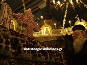 Μετά την ανλαγνωση του πέμπτου Ευαγγελίου, ο π. Βασίλειος έβγαλε τον εσταυρωμένο από το Άγιο Βήμα, τον περιέφερε εντός του Ναού και τον απέθεσε προ της Ωραίας πύλης, για προσκύνηση.