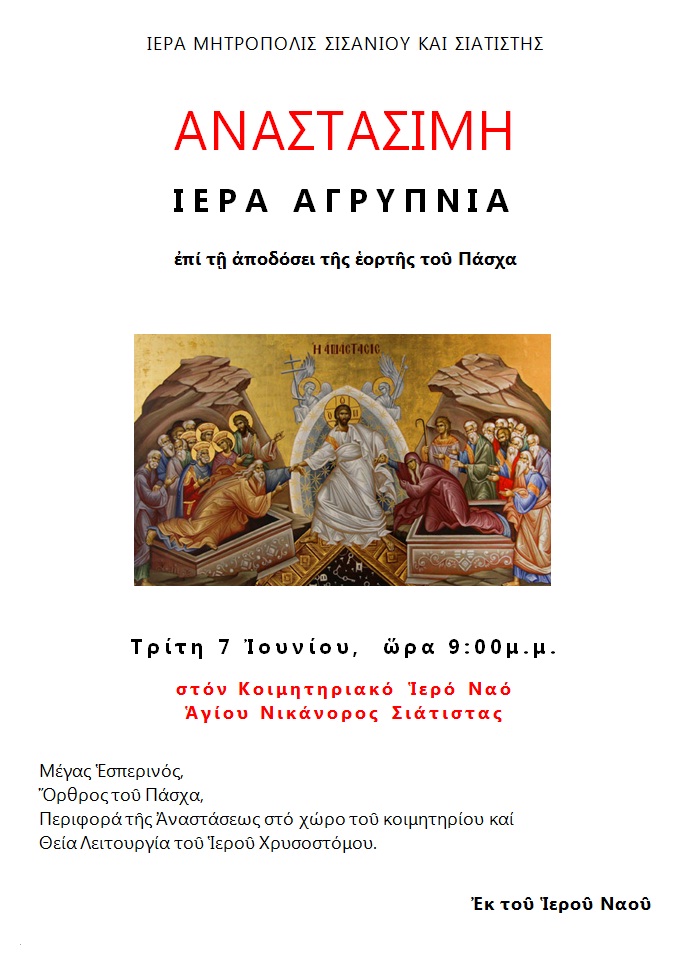 Αναστάσιμη Ιερά αγρυπνία επί τη αποδόσει της εορτής του Πάσχα