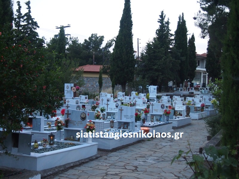 Οι Ιερείς της Ενορίας π. Βασίλειος και π. Νέστορας πριν την ακολουθία του Εσπερινού έψαλλαν τρισάγια στους τάφους και στα οστεοφυλάκια του κοιμητηρίου, στους χώρους όπου φυλάσσονται τα οστά των κεκοιμημένων.