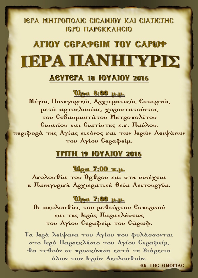 ΠΑΝΗΓΥΡΙΣ ΑΓΙΟΥ ΣΕΡΑΦΕΙΜ ΤΟΥ ΣΑΡΩΦ