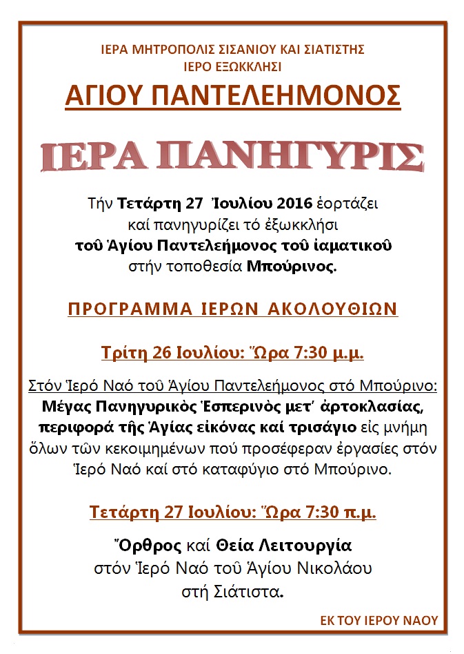 Πανήγυρις Αγίου Παντελεήμονος στην Ενορία του Αγίου Νικολάου