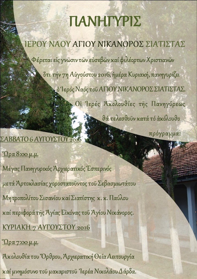Πανήγυρις Ιερού Ναού Αγίου Νικάνορος