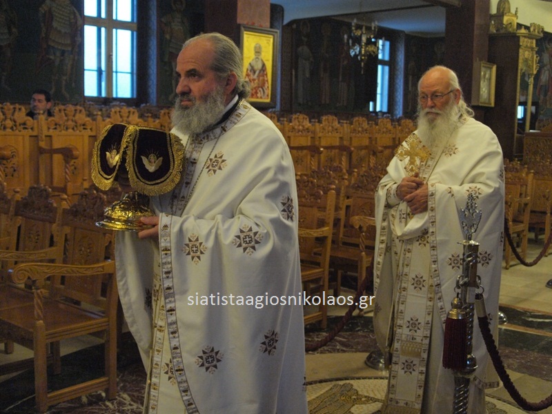 Στο τέλος ευχήθηκε στον εορτάζοντα πατέρα Νέστορα, τον εφημέριο του Ναού μας. «Τον ευλογημένο και ταπεινό αυτόν άνθρωπο», όπως είπε, «που διακονεί την Εκκλησία του Χριστού και έχει το όνομα του Αγίου μεγαλομάρτυρος Νέστορος και είναι μεγάλη ευλογία για εκείνον, ότι φέρει αυτό το μεγάλο όνομα. Αυτό που του ευχόμαστε είναι, ο Θεός του Δημητρίου, ο Άγιος Θεός μας, δηλαδή, να τον ευλογεί, να τον αγιάζει να τον φωτίζει και να τον αξιώνει να είναι διαρκώς ένας μάρτυρας της παρουσίας του Χριστού μέσα στον κόσμο που ζούμε».