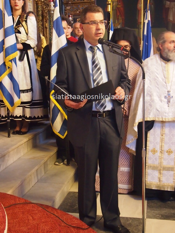 Μετά το πέρας της Δοξολογίας, ο κ. Ιωάννης Πορπόρης, Εκπαιδευτικός, εξεφώνησε τον πανηγυρικό της ημέρας και αναφέρθηκε στα γεγονότα της απελευθερώσεως της πόλης της Σιάτιστας.