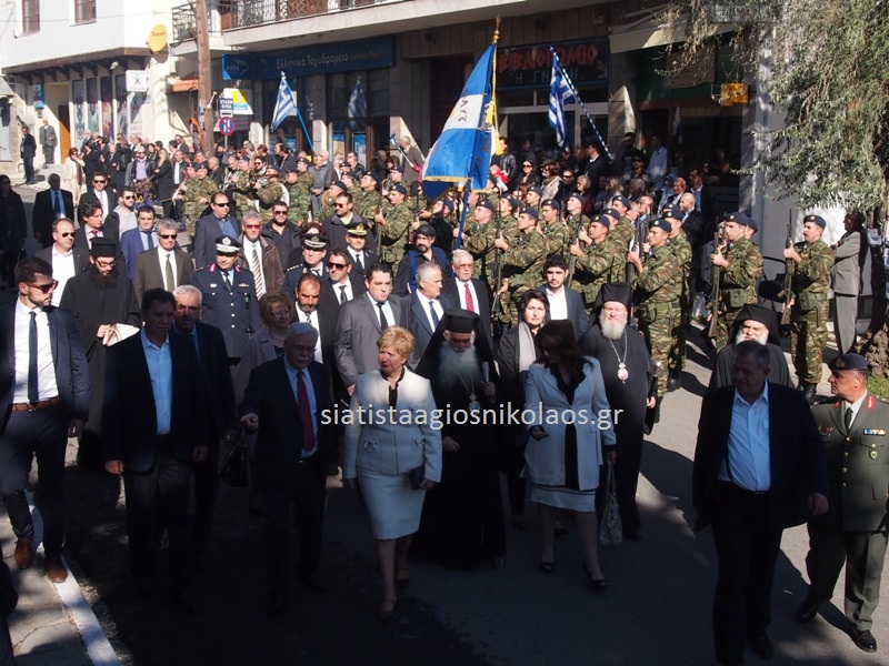 Στις 11:30 π.μ. τελέστηκε επιμνημόσυνη δέηση και κατάθεση στεφάνων στο Μνημείο των πεσόντων της πόλης, καθώς επίσης και στις προτομές των Μιχαήλ Αναστασάκη και Λεωνίδα Παπαμαλέκου, των Κρητών πολεμιστών, στη μάχη της Σιάτιστας. Η κατάθεση έγινε από τις τοπικές και τις λοιπές πολιτικές, στρατιωτικές και Αστυνομικές αρχές. Ακολούθησε σιγή ενός λεπτού και ανάκρουση του Εθνικού μας Ύμνου.