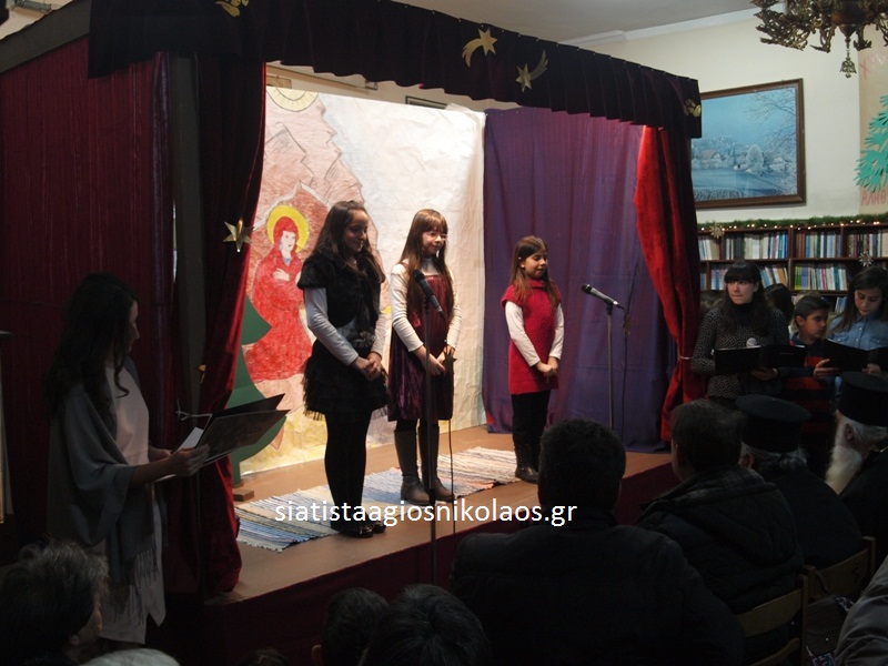 Τα παιδιά του κατώτερου κατηχητικού Σχολείου (Δ’, Ε’, Στ’ Δημοτικού) παρουσίασαν χριστουγεννιάτικα ποιήματα, ύμνους, τραγούδια και κάλαντα, και τη Χριστουγεννιάτικη θεατρική παράσταση: «Το πιο πολύτιμο μαργαριτάρι».