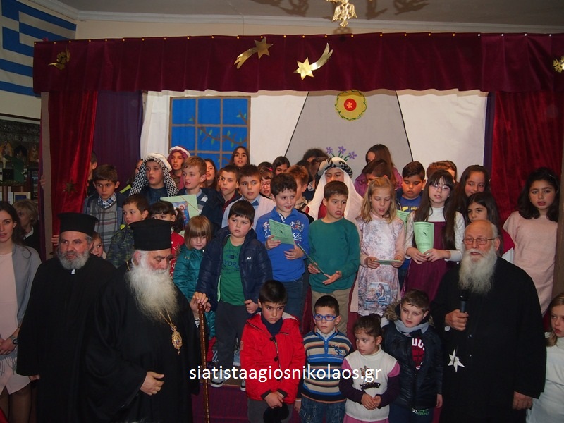 Τέλος, συνεχάρη όλα τα παιδιά, τις κατηχήτριές τους, την Ενορία του Αγίου Νικολάου και ευχήθηκε λέγοντας «… να σας αξιώνει ο Θεός, να αποκτήσετε το αληθινό πνεύμα των Χριστουγέννων, που είναι η ταπείνωση και η αγάπη. Να είστε καλά, Χρόνια πολλά και Ευλογημένα…»